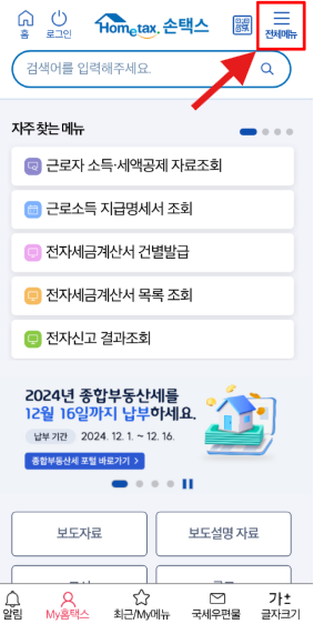 스마트폰을 사용하는 경우 홈택스 모바일 앱(손택스)을 통해서도 간편하게 조회할 수 있습니다.