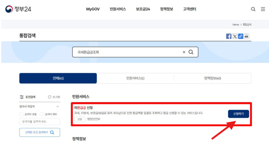 정부24 누리집에서도 환급금을 조회할 수 있어요.