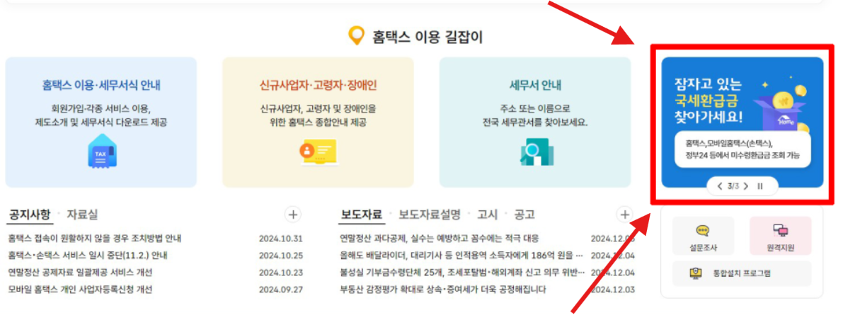온라인으로 환급금을 확인하려면 국세청 홈택스 누리집을 활용하면 됩니다.